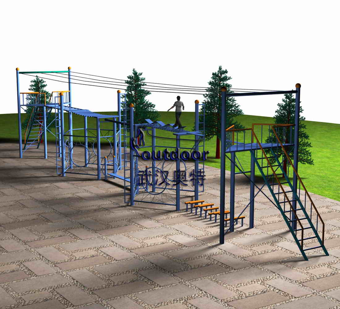 A、橫渡天梯 操作:操作者可選擇手抓橫桿,完全靠手臂的力量帶動身體前進(jìn),也可選擇從平躺的梯子上面攀爬通過。 功能:1、使操作者學(xué)會控制心態(tài),保持持續(xù)穩(wěn)定的情緒。 2、鍛煉操作者不畏艱辛,挖掘潛力、挑戰(zhàn)意志力的能力。 3、鍛煉手臂力量和平衡能力。 B、乘風(fēng)破浪 操作:操作者從翹板橋的一端出發(fā),經(jīng)過橋面上的翹翹板,到達(dá)另一端。 功能:1、提高在高壓下解決問題的能力。 2、提高對自身的控制能力。 3、提高身體協(xié)調(diào)能力。 C、高空獨木 操作:操作者準(zhǔn)備好后迅速從獨木的一端穿越至另一端。 功能:1、增強心理穩(wěn)定性。 2、培養(yǎng)自我挑戰(zhàn)的勇氣和膽量。 3、培養(yǎng)敏捷的反應(yīng)能力和身體控制能力。 4、提高平衡能力和協(xié)調(diào)能力。 D、瀘定橋 操作:操作者從橋的一端出發(fā),迅速通過瀘定橋到達(dá)另一端,在通過時伸開雙臂,可幫助保持身體的平衡。 功能:1、使操作者學(xué)會控制心態(tài),保持持續(xù)穩(wěn)定的情緒。 2、鍛煉操作者不畏艱辛,挖掘潛力、挑戰(zhàn)意志力的能力。 E、高空斷橋 操作:操作者目視前方,從斷橋的一側(cè)助跑,借助后蹬力起跳,躍過斷開部分,落到斷橋另一側(cè)。 功能:1、培養(yǎng)個體不怕困難,不畏艱險的精神。 2、增強個體的膽量,培養(yǎng)克服恐懼的勇氣。 3、培養(yǎng)自我挑戰(zhàn)、突破自我的精神和能力。 4、開發(fā)個人潛能。 5、鍛煉彈跳力。固定兩段鋼板,中間留約成年人一大步的距離。 F、齊心協(xié)力 操作:兩名操作者分別站在兩根鋼絲上,面對面,雙手與對面的隊員相握,保持平衡,依靠對方的力量支持從鋼絲的一端走到另一端 功能:1、培養(yǎng)合作精神和協(xié)調(diào)能力,建立相互協(xié)作的、和諧的人際關(guān)系。 2、增強對共同解決問題時團(tuán)隊成員步調(diào)的一致性的認(rèn)識。 3、樹立正確的自我觀念。 4、培養(yǎng)個體敏捷的反應(yīng)能力和身體控制能力。 G、鉆網(wǎng) 操作:操作者從五角星形狀的孔內(nèi)進(jìn)出、追逐。 功能:1、鍛煉攀爬能力和四肢協(xié)調(diào)能力 2、增加活動樂趣。 H、禮讓通行 操作:全體成員隨機站上晃板,在規(guī)定的時間里、并且在不能有人掉到地面上的前提下完成任務(wù)。 功能:1、訓(xùn)練團(tuán)隊在短時間里建立統(tǒng)一指令、達(dá)成一致行為。 2、培養(yǎng)良好的人際關(guān)系與互動狀態(tài)。 3、體驗領(lǐng)導(dǎo)的作用和對集體的影響。 4、學(xué)習(xí)在條件限制與手忙腳亂的情景下進(jìn)行良好溝通的方法。 5、理清角色與分工,合理分配與運用資源。 6、增強個體的手臂、腰部、腿部力量、身體協(xié)調(diào)能力與平衡力。 I、鉆網(wǎng) 操作:操作者從五角星形狀的孔內(nèi)進(jìn)出、追逐。 功能:1、鍛煉攀爬能力和四肢協(xié)調(diào)能力。 2、增加活動樂趣。 J、攜手并進(jìn) 操作:兩人一組,從器材的一端出發(fā),不斷變換身體姿勢,有創(chuàng)造性地、靈活、及時地選擇落腳點,并保持兩人步調(diào)的一致性。 功能:1、增強協(xié)作意識和協(xié)調(diào)解決問題能力,培養(yǎng)團(tuán)隊成員步調(diào)一致性。 2、重塑正確的自我觀念。 3、培養(yǎng)創(chuàng)造性思維和在解決問題過程中及時調(diào)整策略和方法的能力。 4、培養(yǎng)耐心細(xì)致解決問題的能力。 5、鍛煉手眼協(xié)調(diào)能力和快速反應(yīng)能力。 |