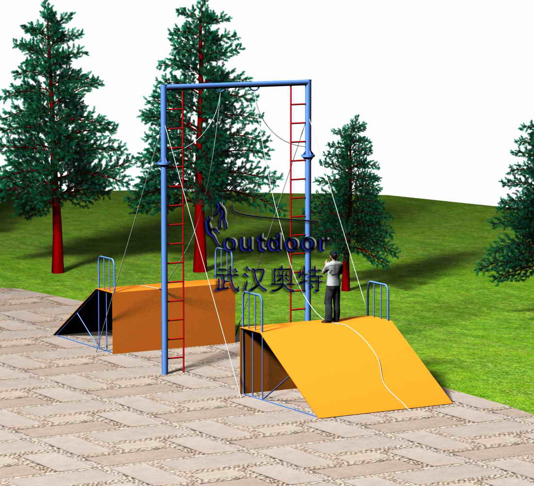 由蕩繩主架、平臺、斜板、防護(hù)海綿墊組成。經(jīng)過細(xì)致的焊接、打磨、拋光后,鋼管底層噴涂底漆三遍,表面使專用面漆二遍。 |