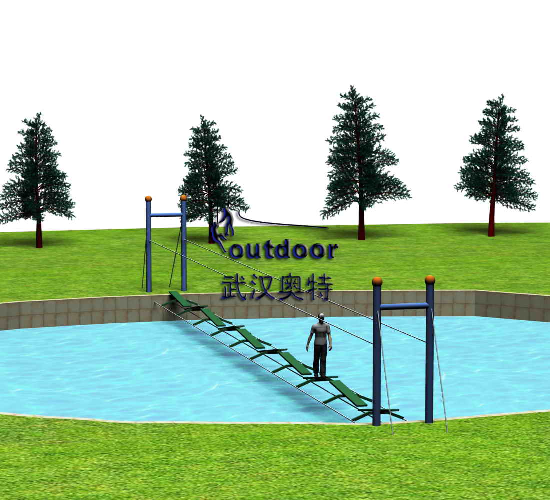 拓展器械產(chǎn)品介紹:水面上由一個(gè)個(gè)串連蹺蹺板組成的橋面,你有勇氣走過嗎?