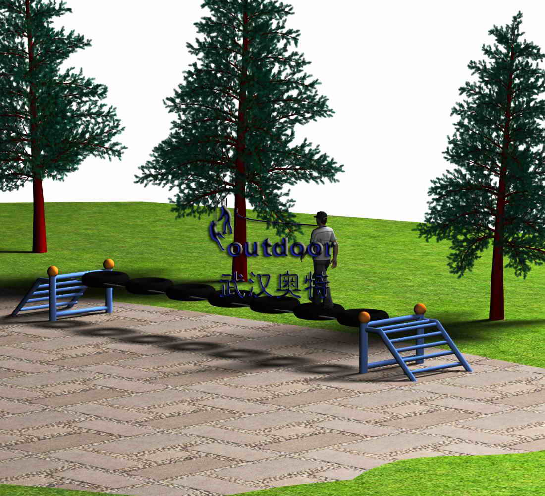 拓展器械產品介紹:波浪起伏的輪胎相連橋面,多人或單人體驗。