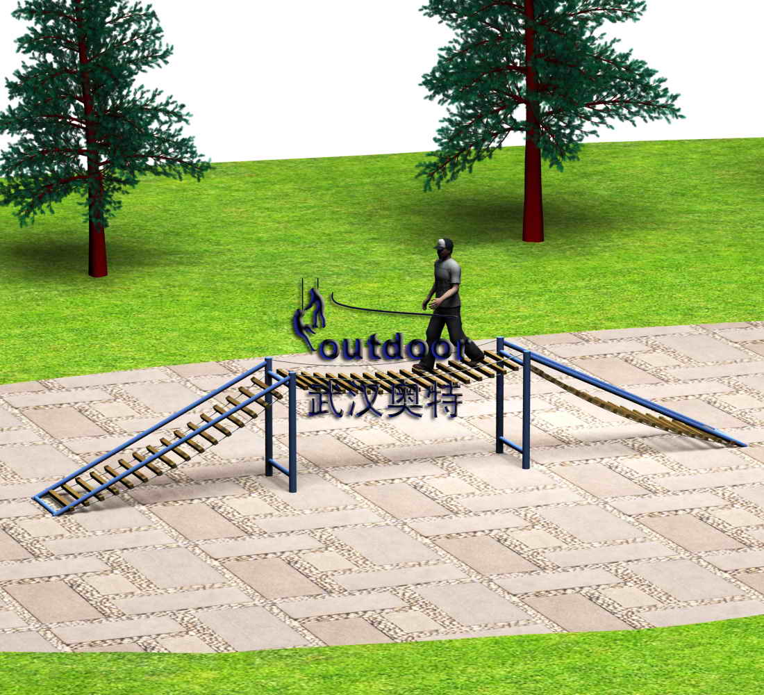 拓展器械產品介紹:波浪起伏的稀疏枕木相連橋面,多人或單人體驗。