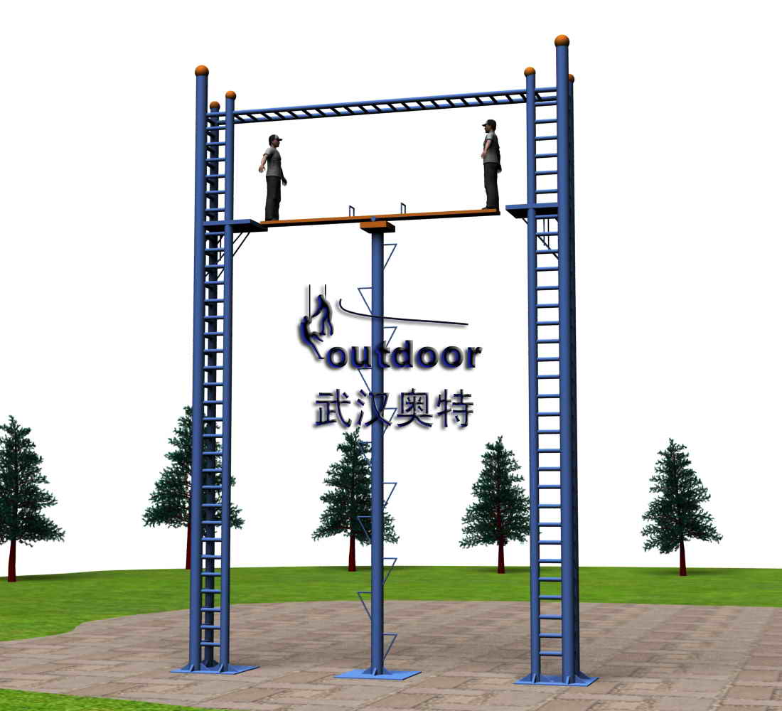 拓展器械產(chǎn)品介紹:在9米高空有一座需要雙人配合穿越的天平橋板,想嘗試嗎?